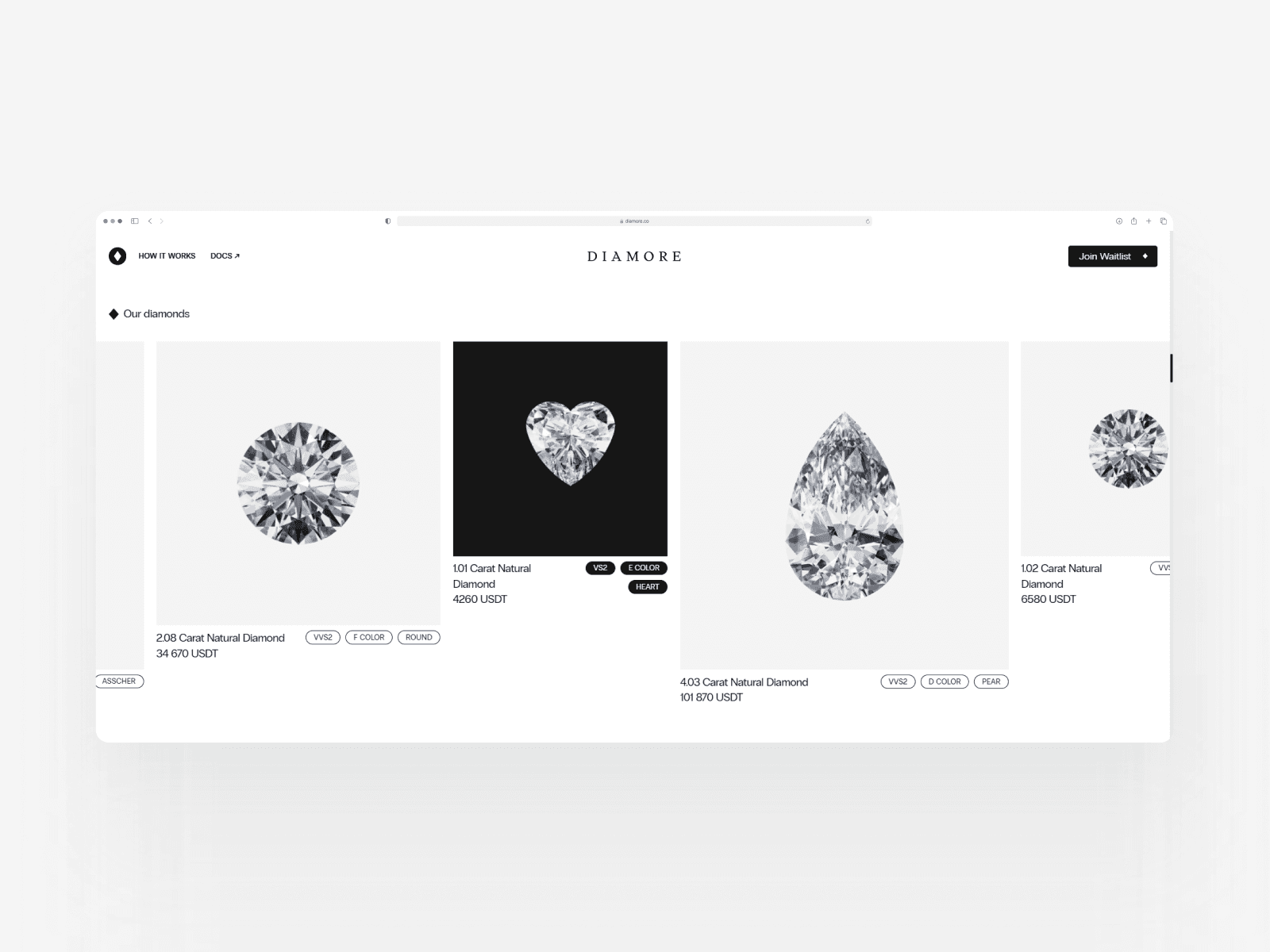 Diamore — это амбициозный стартап, запущенный практически с нуля, с задачей переосмыслить рынок люксовых ювелирных изделий через Web3 и блокчейн. Основная идея: токенизировать исключительно природные бриллианты и представить их как NFT, подтверждающие право на владение реальным камнем