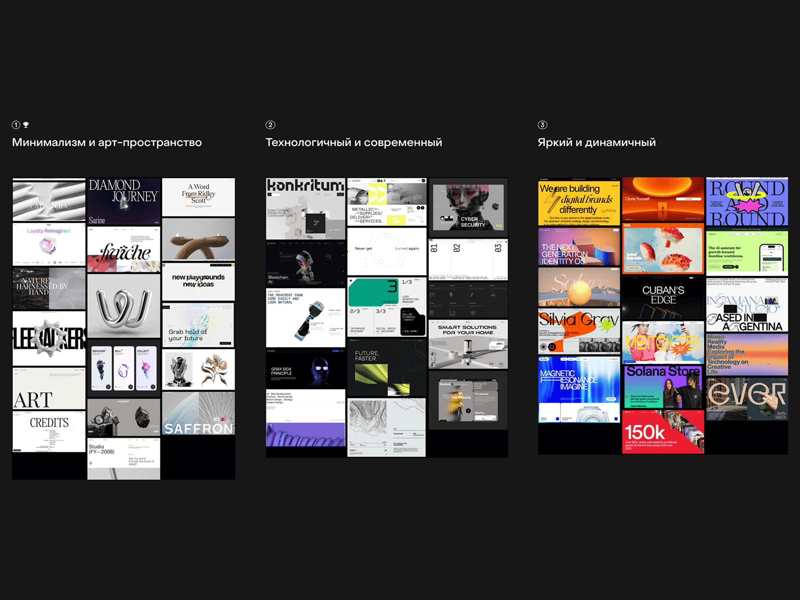 Разработал нескольких направлений дизайна — от классики с элементами арт-индустрии и минимализма до смелых и дерзких вариантов в духе web 3.0. В итоге, с заказчиком основным направлением стал минимализм с акцентом на черно-белую палитру и выразительную типографику, что гармонировало с образом «old money» и было контрастным решением для криптосферы